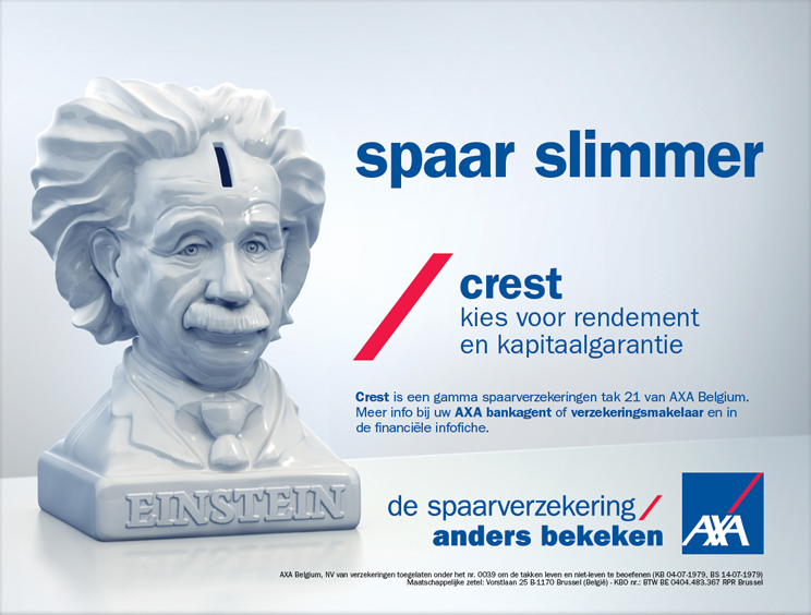 Axa Einstein: As part of an advertisement campaign for the new saving account for axa, an Einstein money-box had to be modelled. I used a basic head that I retopologised slightly as a base for Z-brush. After this it was a matter of finding alot of reference material and gradually sculpting more detail in. The little slit in his head was modelled separately and composited in photoshop.